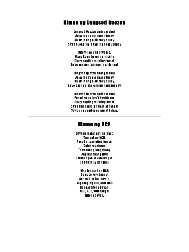 Maynila - Ito ang lungsod na binansagang Pearl of the Orient Malabon - Ito ang lungsod na sinasabing nagmula sa lugar na may maraming labong Makati - Ito ang lungsod na tinatawag na Financial Capital Quezon - Ito ang lungsod na tinatawag ding City of Stars Caloocan - Ito ang lungsod na sinasabing nasa kasuluk-sulukan ng Tondo at Malabon Marikina - Ito ay ang. Quezon ang dating pangulo ng Komonwelt ng Pilipinas na siya rin. 6741 na tuwing ika-19 ng Agosto gugunitain ang kaarawan ni dating pangulo Manuel L.